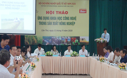 Sáng ngày 12/11/2020, trong khuôn khổ Hội chợ Nông nghiệp Quốc tế Việt Nam 2020, Sở Khoa học và Công nghệ TP.Cần Thơ phối hợp với Sở Nông nghiệp và Phát triển nông thôn tổ chức hội thảo "Ứng dụng Khoa học - Công nghệ trong sản xuất nông nghiệp", tại hội trường của Trung tâm Xúc tiến Đầu tư – Thương mại và Hội chợ Triển lãm Cần Thơ nhằm góp phần khai thác hiệu quả các tiềm năng thay thế sức lao động, thúc đẩy tăng năng suất, chất lượng đối với vật nuôi và cây trồng trên địa bàn TP.Cần Thơ. Hội thảo là một trong những hoạt động chính của sự kiện Trưng bày, trình diễn công nghệ diễn ra từ ngày 11/11/2020 đến ngày 15/11/2020.
