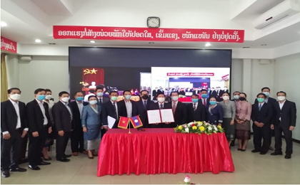 The signing ceremony of the Memorandum of Understanding on cooperation in an online form between Kowloon University, Vietnam and the Department of Technology and Innovation - Ministry of Technology and Communications, Lao People's Democratic Republic at 04 bridgeheads took place on August 13, 2021.