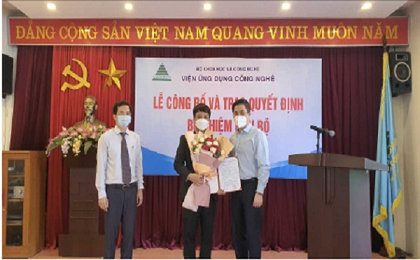 In the morning of September 1, 2021, at the headquarters of the Institute of Technology Application (UDCN), a ceremony to announce and award the Appointment Decision for two comrades holding the position of Deputy Director of the Institute took place. Attending the ceremony, there were Mr. Nguyen Hoang Giang, Member of the Party Personnel Committee, Deputy Minister of Science and Technology; Comrade Pham Thi Van Anh, Chief of the Office of the Party Personnel Committee, Deputy Director of the Department of Organization and Personnel, Ministry of Science and Technology.
