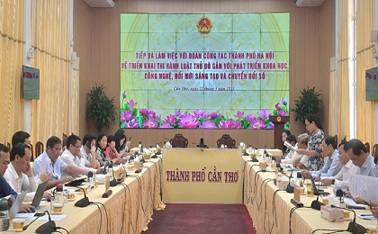 Can Tho City received and worked with the Hanoi City Delegation on implementing the Capital Law in conjunction with the development of science, technology, innovation and digital transformation.