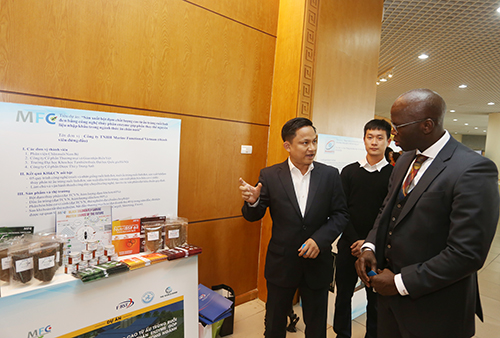 Ông Ousman Dione, Giám đốc WB tại Việt Nam nghe giới thiệu về sản phẩm của Dự án FIRST.