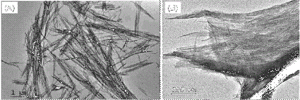 Hình 3. Ảnh TEM của (A) sợi nano Al2O3, (B) hệ vật liệu composite Al2O3/acid stearic.