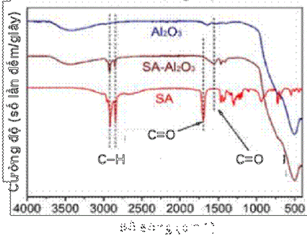 Hình 4. Phổ FTIR của các mẫu Al2O3, acid stearic (SA) và Al2O3/acid stearic (SA-Al2O3).