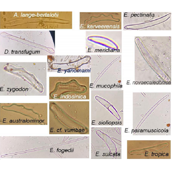 Hình: Hình thái bên ngoài của một số loài tảo khuê bám thuộc họ Eunotiaceae trong VGQ Tràm Chim