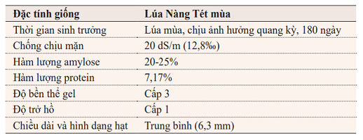 Một số đặc tính của giống lúa Nàng Tét mùa