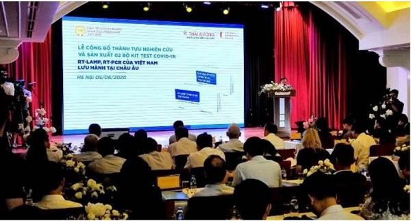 Chiều 5-6, tại Hà Nội, Hiệp hội Doanh nghiệp Khoa học Công nghệ Việt Nam và Công ty CP Sao Thái dương đã phối hợp công bố thành tựu nghiên cứu và sản xuất 2 bộ kit chẩn đoán phát hiện virus SARS-CoV-2 là One-step RT-PCR Covid-19 kit THAI DUONG và RT-LAMP Covid-19 Kit THAI DUONG.
