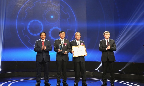 Thứ trưởng Bộ KH&CN Phạm Công Tạc trao giải nhất cho tác giả Trần Kim Quy tại Lễ trao giải Cuộc thi Sáng chế năm 2018