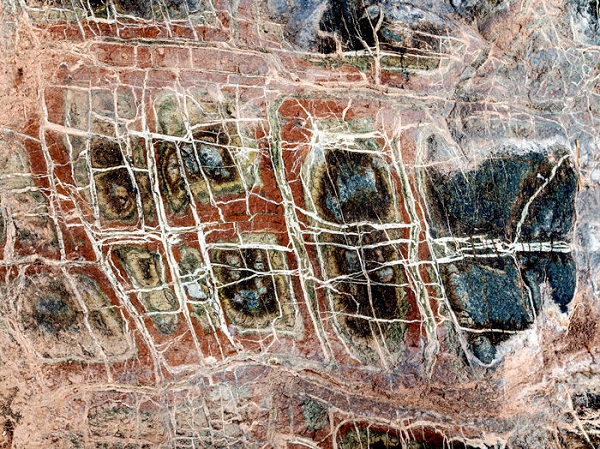CO2 phản ứng tự nhiên với đá, tạo thành các vệt trắng khoáng chất gốc cacbon.