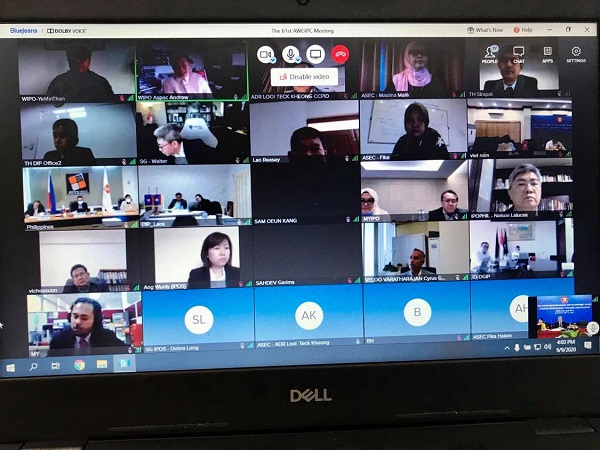 Trong các ngày 09 và 10/9/2020, Cục Sở hữu trí tuệ đã chủ trì Hội nghị trực tuyến Cuộc họp lần thứ 61 Nhóm công tác về Hợp tác Sở hữu trí tuệ các nước ASEAN (AWGIPC 61) với sự tham dự của khoảng hơn 80 đại biểu đến từ 10 nước thành viên ASEAN, Ban Thư ký ASEAN và các đối tác đối thoại của ASEAN về sở hữu trí tuệ như Cơ quan Sở hữu trí tuệ Trung Quốc (CNIPA), Cơ quan Sáng chế châu Âu (EUIPO), Nhật Bản, Hàn Quốc, Tổ chức Sở hữu trí tuệ thế giới (WIPO) và Hiệp hội Sở hữu trí tuệ ASEAN (AIPA).
