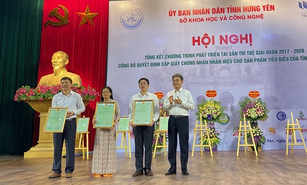 Tại Hội nghị, Ông Đinh Hữu Phí – Cục trưởng Cục Sở hữu trí tuệ đã trao Giấy chứng nhận nhãn hiệu tập thể cho sản phẩm: bánh tẻ Phụng Công, nấm chất lượng cao Ân Thi, mộc Hòa Phong - Mỹ Hào và Giấy chứng nhận nhãn hiệu chứng nhận cho sản phẩm: long nhãn Hưng Yên, nếp thơm Hưng Yên, cam Hưng Yên. Đây là các sản vật, sản phẩm truyền thống của tỉnh Hưng Yên với chất lượng tốt, luôn được người tiêu dùng ưa chuộng.