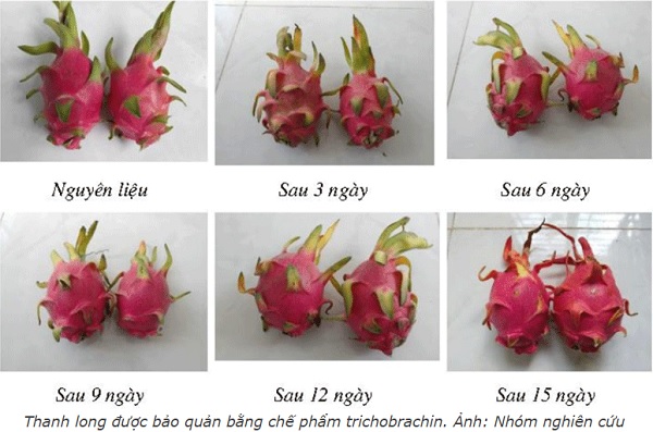 Dịch chiết trichobrachin do Trung tâm ươm tạo doanh nghiệp nông nghiệp công nghệ cao TPHCM nghiên cứu sản xuất giúp bảo quản thanh long được 15 ngày ở nhiệt độ thường và giảm hư hỏng hơn 80% so với việc không sử dụng chất bảo quản.