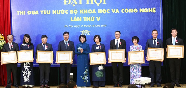 Chiều 26/10 Bộ Khoa học và Công nghệ tổ chức Đại hội thi đua yêu nước lần thứ V, Phó Chủ tịch nước Đặng Thị Ngọc Thịnh, lãnh đạo các bộ, ngành tham dự sự kiện.