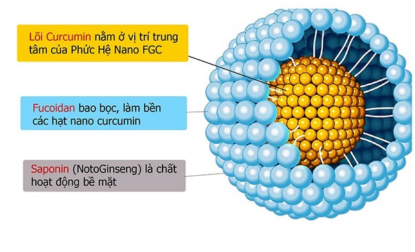 Sáng chế mang tên phức hệ Nano FGC này cải thiện được độ tan của Curcumin lên gấp hàng nghìn lần, tối ưu hóa khả năng bao gói, bảo vệ bộ ba hoạt chất (Fucoidan, Curcumin, Noto Ginseng) khỏi rào cản sinh học, nâng cao thời gian lưu thông trong máu, tập trung hoạt chất tại vùng khối u thông qua cơ chế hướng đích thụ động. Các hạt nano FGC có thể chui vào, tập trung vào các khối u, ức chế sự phát triển của tế bào ung thư mà không làm hại các tế bào lành.