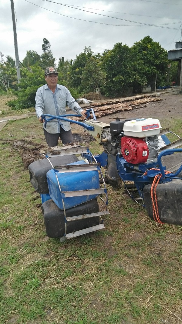 Ông giải thích: “Các thùng hình trụ có cửa nạp và xả chất lỏng. Trong khi di chuyển máy qua sông hoặc kênh rạch, quá trình thao tác trên vùng đất ngập nước, thùng sẽ được tháo toàn bộ chất lỏng để tạo độ nổi cho máy. Nhờ vậy, máy di chuyển dễ dàng trên mặt nước kênh, rạch mà không cần phải cho máy lên ghe, xuồng để vận chuyển đến nơi canh tác. Nếu hoạt động trên vùng đất cứng, nhiều cây cỏ, thùng được thêm chất lỏng để tạo sức nén xuống mặt đất. Nhờ vậy, dù máy có trọng lượng nhẹ hơn so với máy cày thông thường nhưng vẫn đạt hiệu quả tương đương, do đó tiết kiệm được chi phí vật liệu chế tạo cũng như nhiên liệu vận hành máy”.