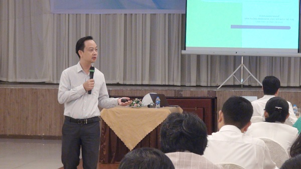 Ông Trần Giang Khuê - Văn phòng miền Nam, Cục Sở Hữu trí tuệ trình bày tại lớp tập huấn.