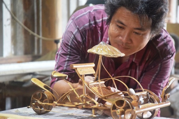 Thấy anh chuyên sản xuất các sản phẩm từ tre, mẫu mã đẹp, thân thiện với môi trường nên người bạn đã đặt 100 xửng hấp bánh bao, loại xửng mà trước đây người này chỉ đặt ở nước ngoài. Bên trong xưởng tre gỗ khá đơn sơ ấy, chúng tôi còn bắt gặp những chiếc dao, đĩa, muỗng, tách trà… rồi đến các đồ dùng học tập, hoa sen, xe… đều được làm từ tre, hoàn toàn không dùng đến đinh ốc. Trong số đó, giờ đã có nhiều đơn hàng xuất khẩu sang các thị trường khó tính như Đức, Pháp, Canada.