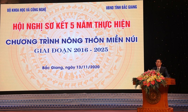 Ngày 13/11/2020, tại TP Bắc Giang, Bộ Khoa học và Công nghệ (KH&CN) đã phối hợp với UBND tỉnh Bắc Giang tổ chức Hội nghị sơ kết 5 năm thực hiện Chương trình nông thôn miền núi giai đoạn 2016-2025. Tham dự Hội nghị có Thứ trưởng Bộ KH&CN Nguyễn Hoàng Giang; Phó Bí thư Tỉnh ủy, Phó Chủ tịch Thường trực UBND tỉnh Bắc Giang Lê Ánh Dương; lãnh đạo các đơn vị chức năng thuộc Bộ KH&CN; lãnh đạo các sở KH&CN; đại diện các doanh nghiệp, tổ chức chủ trì các dự án thuộc Chương trình...