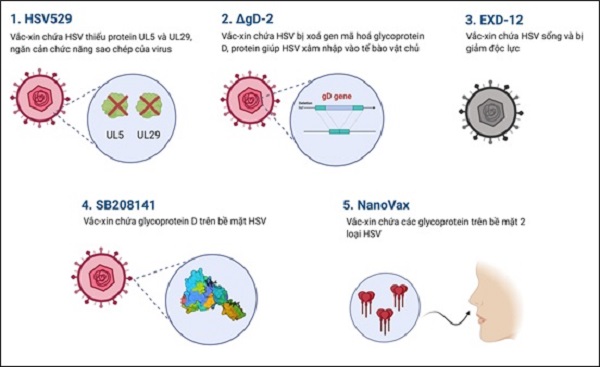 Hình 1. Các ứng cử viên vắc-xin tiềm năng cho bệnh Herpes.