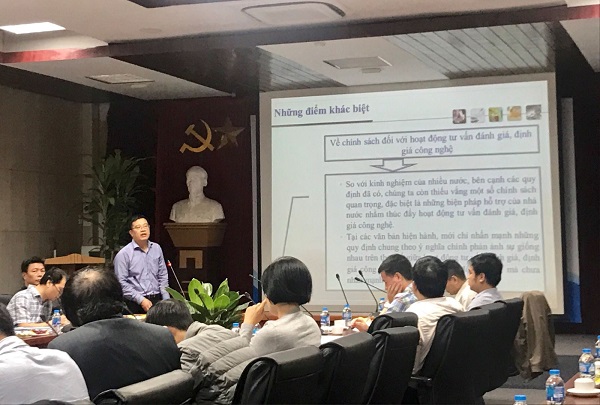 TS. Trịnh Minh Tâm, Phó Viện trưởng Viện Đánh giá khoa học và Định giá công nghệ trình bày tại Tọa đàm