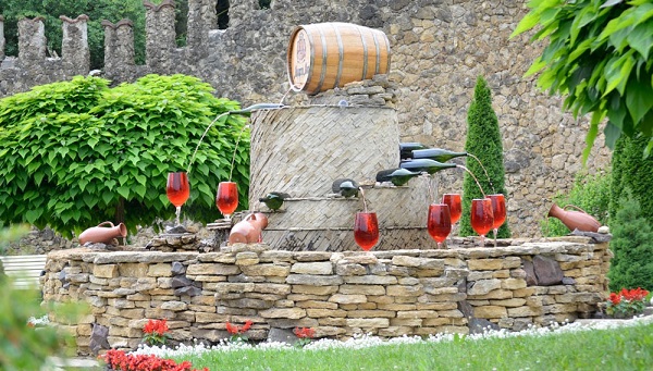 Vòi phun rượu vang bên ngoài nhà máy Mileștii Mici. Ảnh: Milestii-mici.md