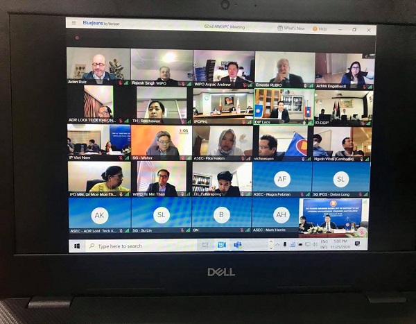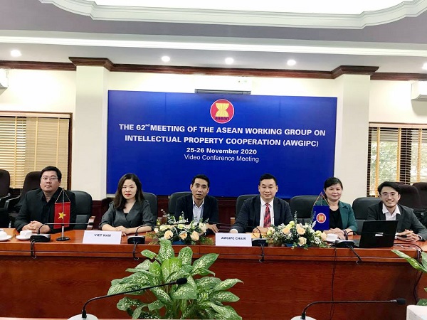 Trong các ngày 25 và 26/11/2020, Cục Sở hữu trí tuệ đã chủ trì Hội nghị trực tuyến Cuộc họp lần thứ 62 Nhóm công tác về Hợp tác Sở hữu trí tuệ các nước ASEAN (AWGIPC 62) với sự tham dự của khoảng hơn 80 đại biểu đến từ 10 nước thành viên ASEAN, Ban Thư ký ASEAN và các đối tác đối thoại của ASEAN về sở hữu trí tuệ như Tổ chức Sở hữu trí tuệ thế giới (WIPO), Cơ quan Sở hữu trí tuệ Hàn Quốc (KIPO), Cơ quan Sáng chế và Nhãn hiệu Hoa Kỳ (USPTO), Cơ quan Sở hữu trí tuệ châu Âu (EUIPO), Cơ quan Sáng chế châu Âu (EPO) và Hiệp hội Nhãn hiệu quốc tế (INTA).