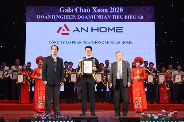 CEO AnHome Bùi Thành Ninh (giữa) nhận chứng nhận Doanh nghiệp, doanh nhân tiêu biểu 4.0 tại Gala chào Xuân 2020 - Tự hào thương hiệu Đất Việt | Nguồn: Thương hiệu & Công luận
