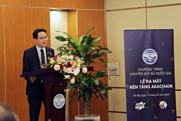 Ông Trần Đăng Hòa - Giám đốc điều hành FPT Software, đơn vị triển khai xây dựng akaChain – tại Lễ ra mắt nền tảng năm 2020 do Bộ Thông tin & Truyền thông bảo trợ | Nguồn: FPT