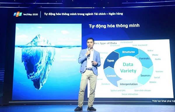Ông Bùi Đình Giáp - Giám đốc sản phẩm akaBot - chia sẻ về nền tảng tại FPT Techday 2020 | Nguồn: FPT