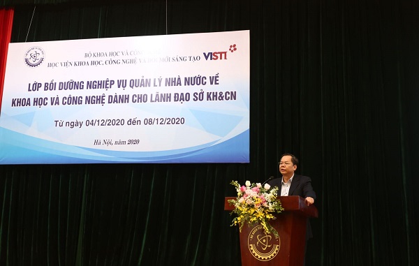 Phát biểu khai mạc lớp học, Thứ trưởng Lê Xuân Định cho biết, thực hiện chủ trương xây dựng đội ngũ cán bộ các cấp, nhất là cấp chiến lược, đủ phẩm chất, năng lực và uy tín, ngang tầm nhiệm vụ được xác định tại Nghị quyết số 26-NQ/TW ngày 19/5/2018 của Hội nghị lần thứ bảy Ban Chấp hành Trung ương Đảng khóa XII, năm 2019, Bộ KH&CN đã ban hành chương trình khung Bồi dưỡng nghiệp vụ quản lý nhà nước về KH&CN dành cho lãnh đạo Sở KH&CN. Đây là chương trình bồi dưỡng cấp chứng chỉ dành cho cán bộ lãnh đạo, quản lý cấp Sở KH&CN; cán bộ được luân chuyển, điều động bổ nhiệm vào chức danh lãnh đạo, quản lý cấp Sở KH&CN; nguồn quy hoạch cán bộ lãnh đạo, quản lý của các chức danh trên thuộc UBND các tỉnh, thành phố trực thuộc Trung ương.
