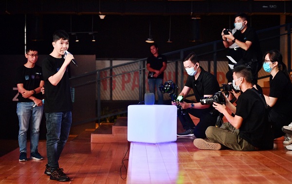 Anh Nguyễn Trường Sơn và anh Nguyễn Khánh Duy demo loa Kiki tại sự kiện.