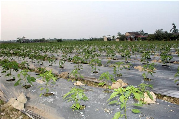 Ruộng trồng cây ớt an toàn của anh Lê Văn Thôi ở thôn 5, xã Xuân Sinh, huyện Thọ Xuân, tỉnh Thanh Hóa.