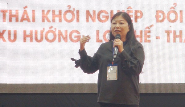 Bà Nguyễn Phi Vân - Chủ tịch mạng lưới Nhà đầu tư Thiên thần Việt Nam trình bày tại diễn đàn