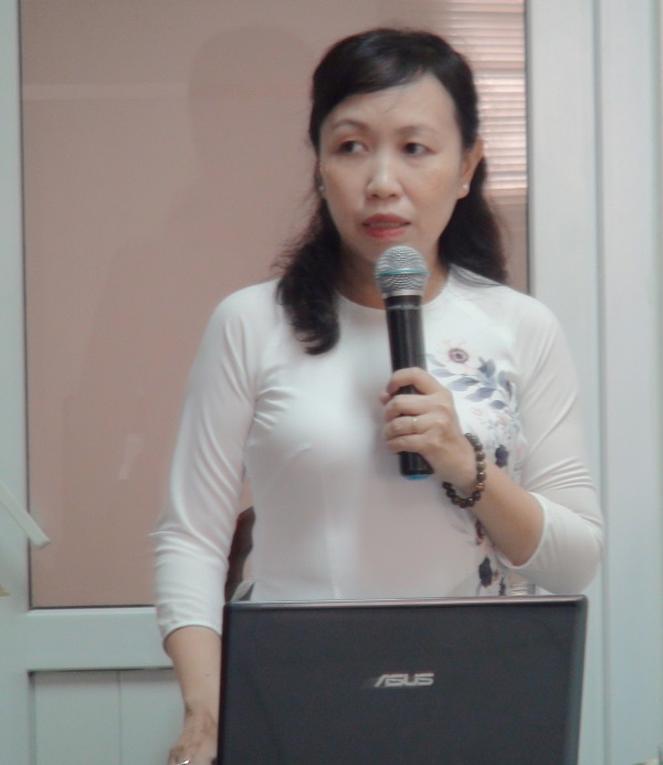 Bà Huỳnh Nguyễn Bảo Loan - Giám đốc Trung tâm Kỹ thuật Tiêu chuẩn Đo lường Chất lượng TP.Cần Thơ báo cáo tại hội nghị