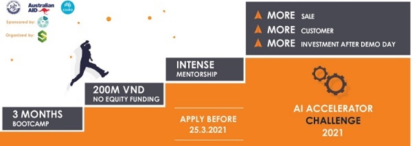 Chương trình “Thử thách sáng tạo cùng công nghệ trí tuệ nhân tạo – AI Accelerator Challenge 2021” (AAC 2021) do VSV Foundation tổ chức dưới sự bảo trợ của Bộ Khoa học và Công nghệ và Đại sứ quán Úc tổ chức đã chính thức mở đăng ký đến 0h ngày 25/3/2021.