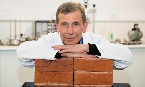 Chủ nhiệm nhóm nghiên cứu - Phó giáo sư Abbas Mohajerani và gạch làm từ đầu lọc thuốc lá. | Ảnh: RMIT