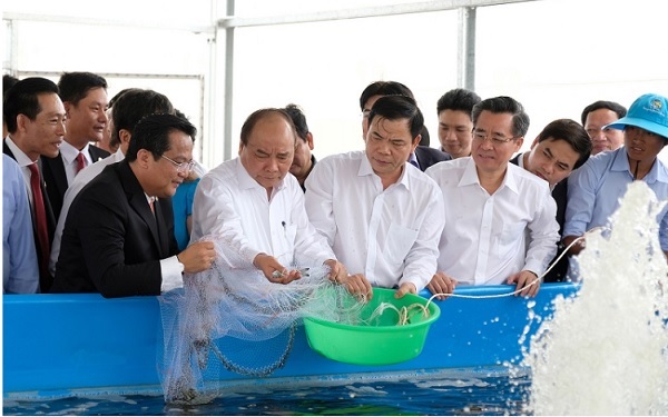 Thủ tướng Nguyễn Xuân Phúc thăm Khu nông nghiệp ứng dụng công nghệ cao tôm Bạc Liêu, ngày 30/1/2018. Ảnh: VGP