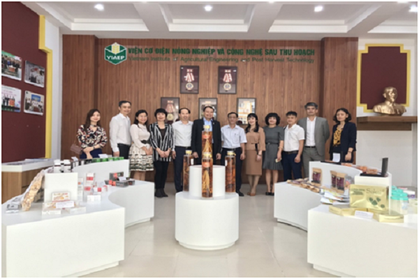 Đoàn công tác tham quan cơ sở vật chất, trang thiết bị nghiên cứu và các thành tựu từ kết quả nghiên cứu của Viện Cơ điện nông nghiệp và Công nghệ sau thu hoạch.