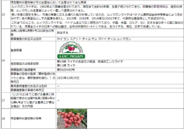 Thông tin công bố về vải thiều Lục Ngạn, Bắc Giang của Việt Nam được bảo hộ chỉ dẫn địa lý tại Nhật Bản.