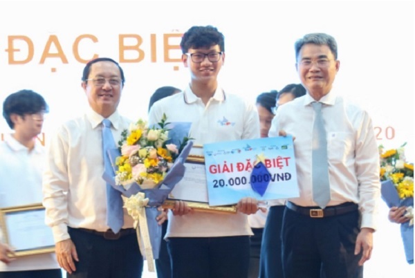 Giải Đặc biệt của cuộc thi "Sinh viên với quyền sở hữu trí tuệ" 2020 thuộc về nhóm tác giả Trường Đại học Bách khoa TP.HCM với dự án "Tự động hóa trong quy trình làm sạch tổ yến". Ảnh: Cục Sở hữu trí tuệ