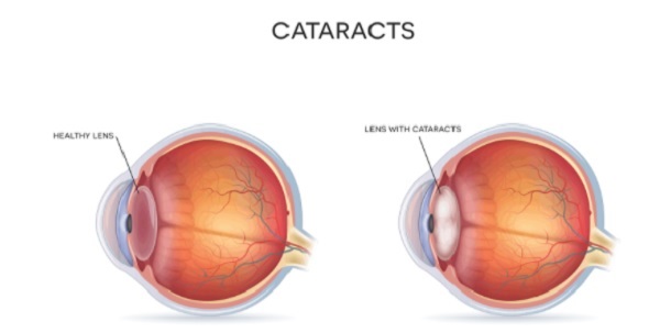 Bình thường thủy tinh thể có chức năng điều tiết, cho ánhtinh thể bị giảm thị lực, nhìn mờ và có nguy cơ bị mù (hình phải). Ảnh: Wellington Eye Centre sáng đi qua và hội tụ tại võng mạc giúp ta nhìn thấy mọi vật (hình trái). Vì ánh sáng khó đi qua nên người bệnh bị đục thủy