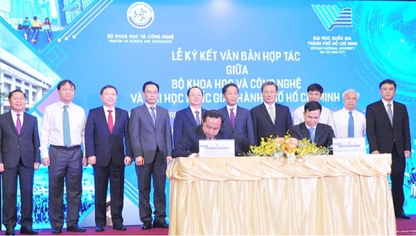 Bộ KH&CN và ĐH Quốc gia TPHCM ký kết chương trình phối hợp hoạt động KH&CNgiai đoạn 2021-2025 Ảnh: TM