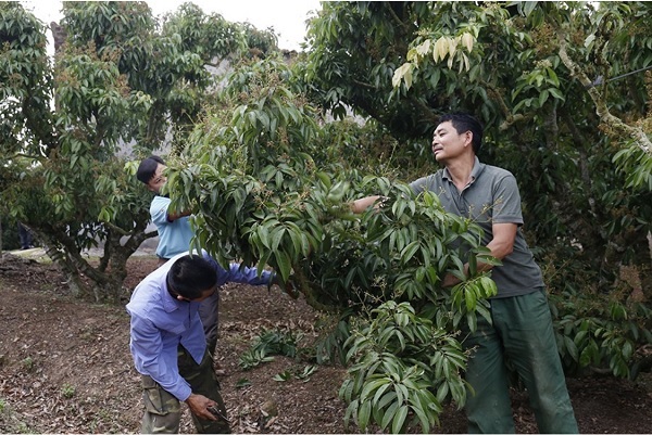 Người dân đang chăm sóc vải thiều tại xã Quý Sơn, huyện Lục Ngạn. Ảnh: Mỹ Hạnh