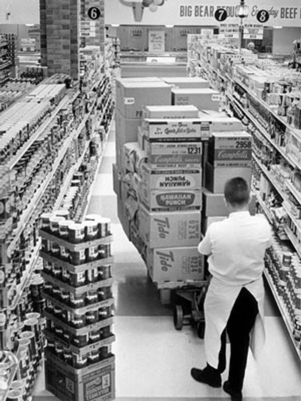 Với sự ra đời của siêu thị hiện đại, người tiêu dùng đưa ra quyết định một mình và không còn được hưởng lợi từ một bộ lọc (trợ lý cửa hàng) giữa người tiêu dùng và sản phẩm vì tất cả các sản phẩm có sẵn đều hiển thị. (Ảnh: George Marks / Getty Images)