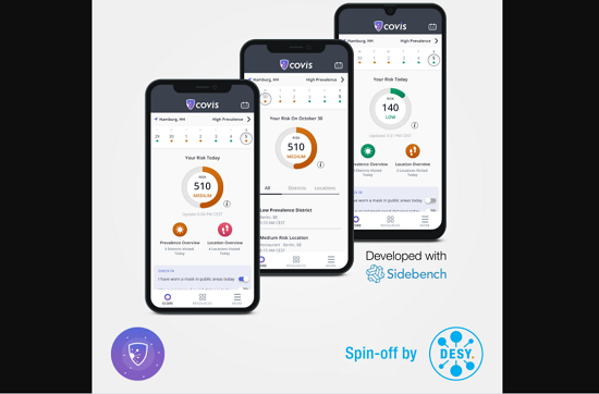 CoVis was developed by a team of young researchers. Ayan Paul, a theoretical physicist at DESY, is a member of the team, which won the Covid-19 Challenge hackathon of the Massachusetts Institute of Technology in April 2020 and June 2020. The team of experts with different backgrounds and experiences, from UX design to public health experts, connected within minutes at the hackathon. In the team and for the app development Paul capitalizes on his knowledge and experience in detailed statistical algorithms and models, which he acquired from data analyses and interpretation of data sets from experiments at particle accelerators.
