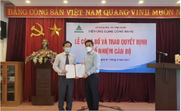 In the morning of September 1, 2021, at the headquarters of the Institute of Technology Application (UDCN), a ceremony to announce and award the Appointment Decision for two comrades holding the position of Deputy Director of the Institute took place. Attending the ceremony, there were Mr. Nguyen Hoang Giang, Member of the Party Personnel Committee, Deputy Minister of Science and Technology; Comrade Pham Thi Van Anh, Chief of the Office of the Party Personnel Committee, Deputy Director of the Department of Organization and Personnel, Ministry of Science and Technology.