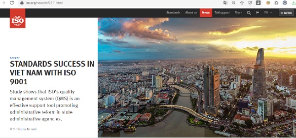The article recognized Vietnam's success in applying ISO 9001, was posted on the ISO organization's website.