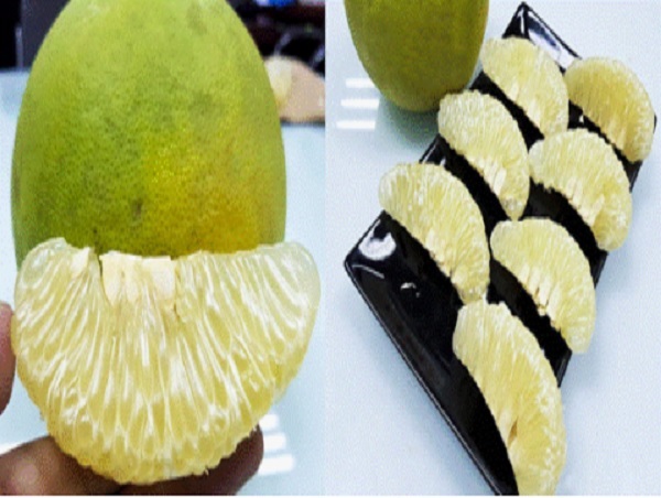 Soi Ha pomelo, when ripe, has a light yellow, smooth, fragrant skin. White pomelo are clear and shiny, drained, sweet aftertaste, not bitter, not sour.