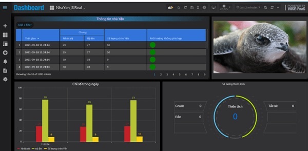 The nest farming system developed by the team consists of 4 parts: sensing and adjusting devices; Gateway; WISE-PaaS cloud platform; and the application displays the data to the user. Accordingly, sensors installed at many locations in the bird nest are responsible for sending data to the WISE-PassS cloud platform through the Gateway, and the data will be displayed on a computer or phone application for people to use bird nest can see.