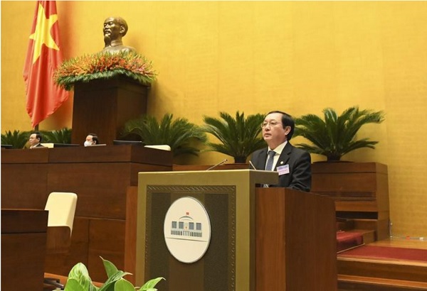 Minister of Science and Technology Huynh Thanh Dat presented a report on the draft Law amending and supplementing a number of articles of the Intellectual Property Law. Photo: Industry and Trade newspaper