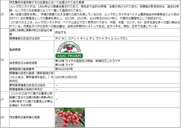 Announcement about lychee Luc Ngan, Bac Giang of Vietnam granted the Certificate of Geographical Indication No. 107 in Japan.